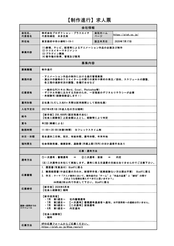 2027年4月業務開始予定の「アニメーター」を若干名募集中です。